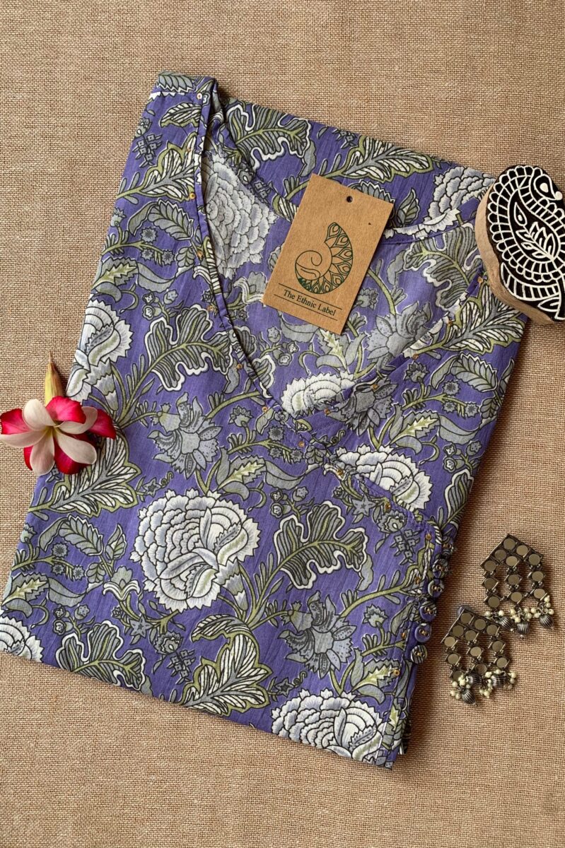 “Shama” Hand Block Printed Angrakha Cotton kurta (S to 5XL)