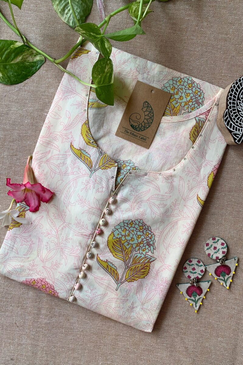 “Ojaswi” Hand Block Printed Floral Cotton kurta