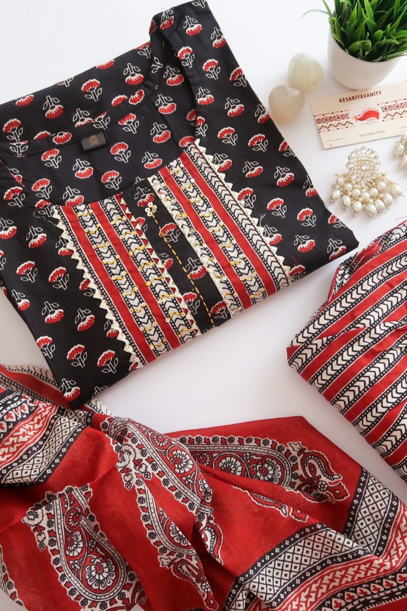“Paakhi” Deep Red Paisley Hand Block Printed Cotton kurta