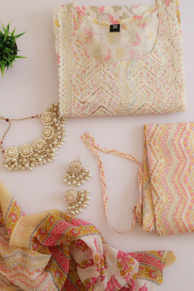 “Aaloka” Chikankari Kurta with Pants (2pc) – Big Size