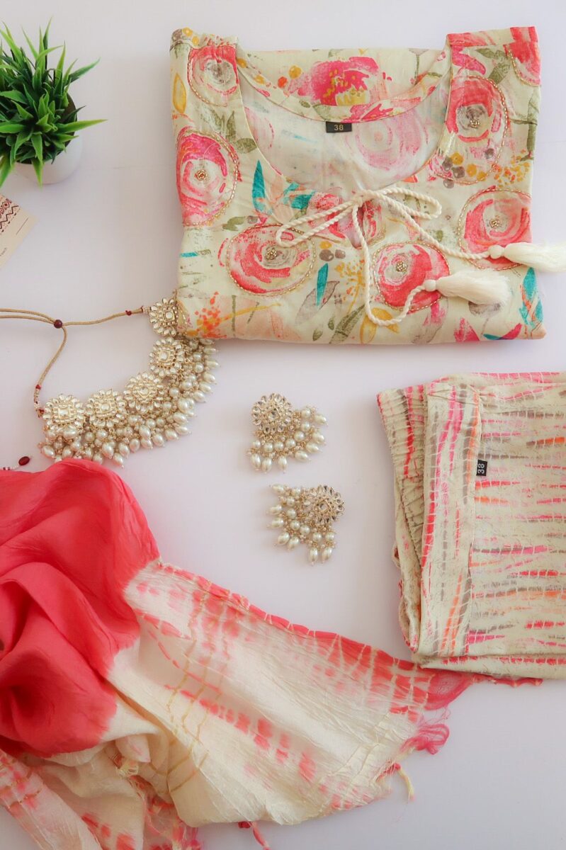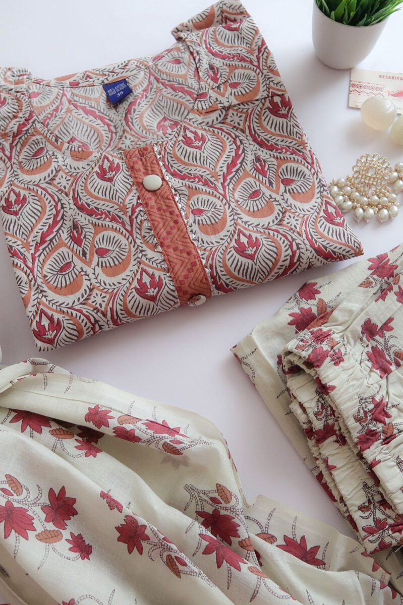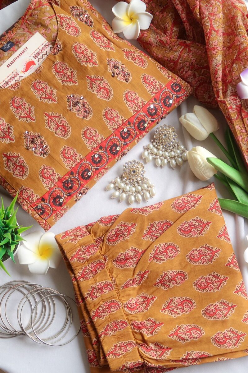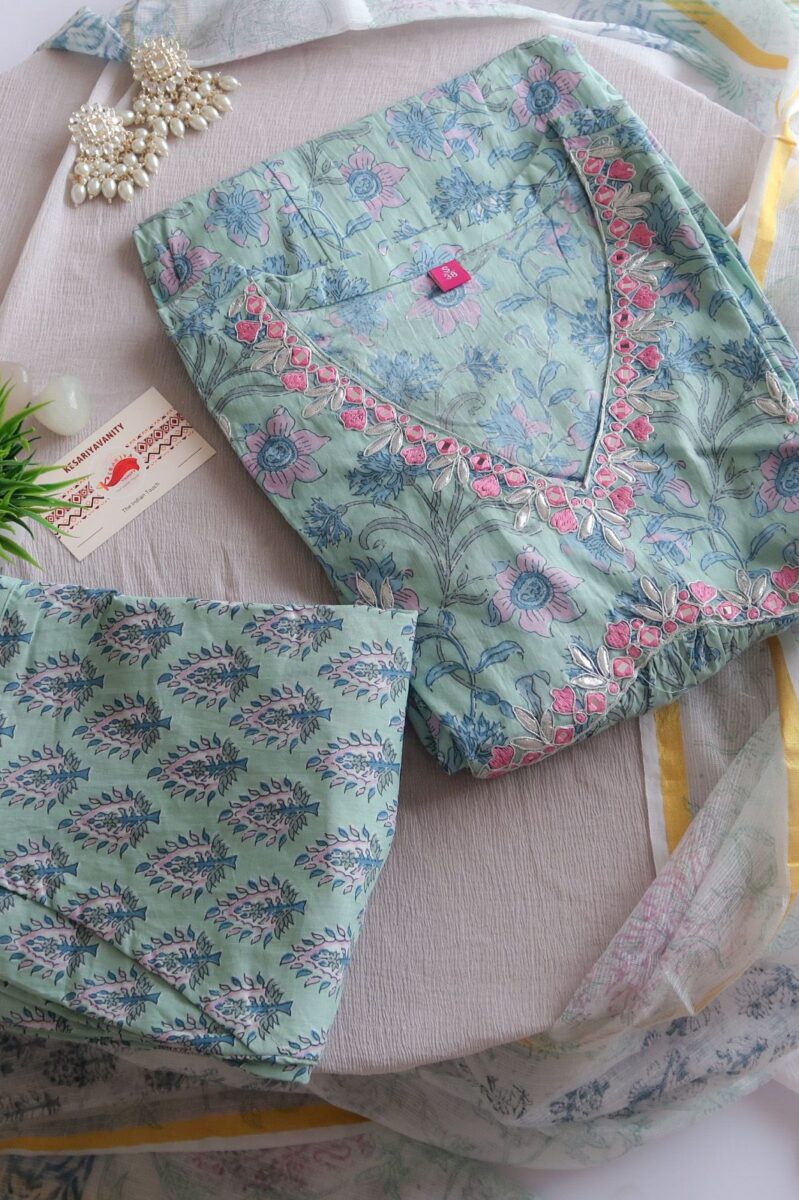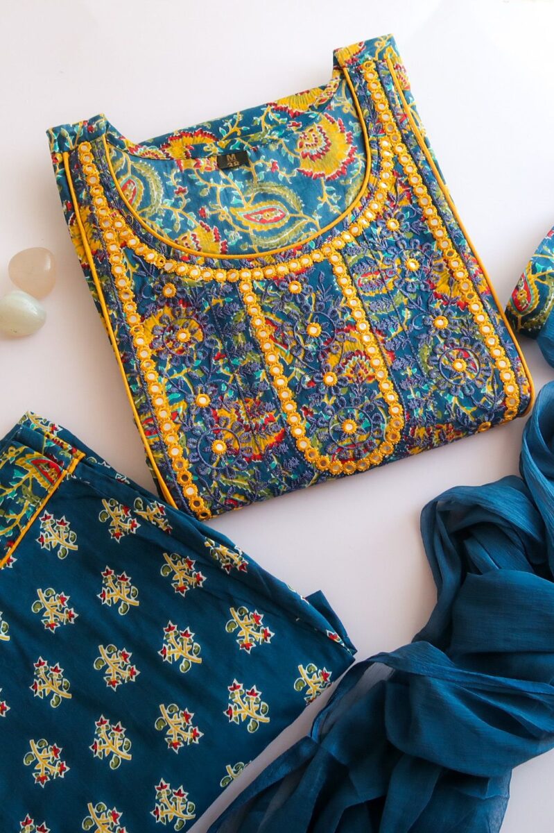 Floral Whispers Embroidered Three-Piece Cotton Suit Set – Blend of Fun
