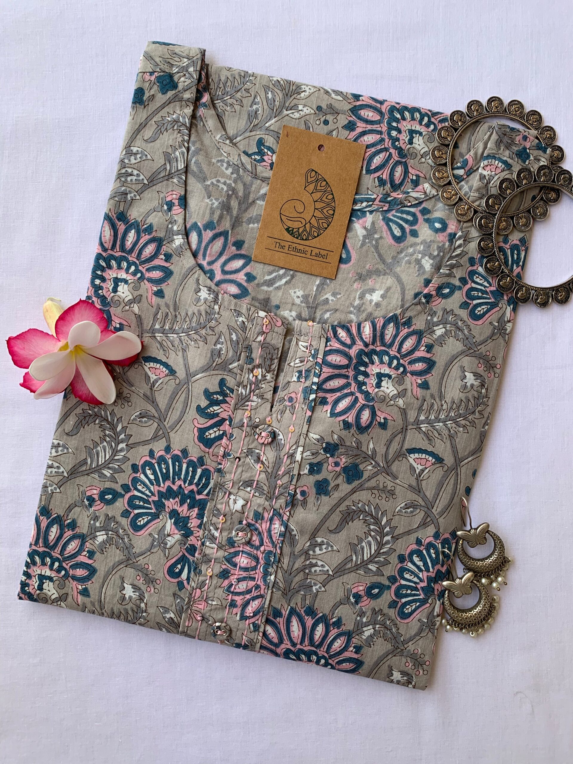 Grey Flaura Jaal Hand Block Printed Cotton Kurta