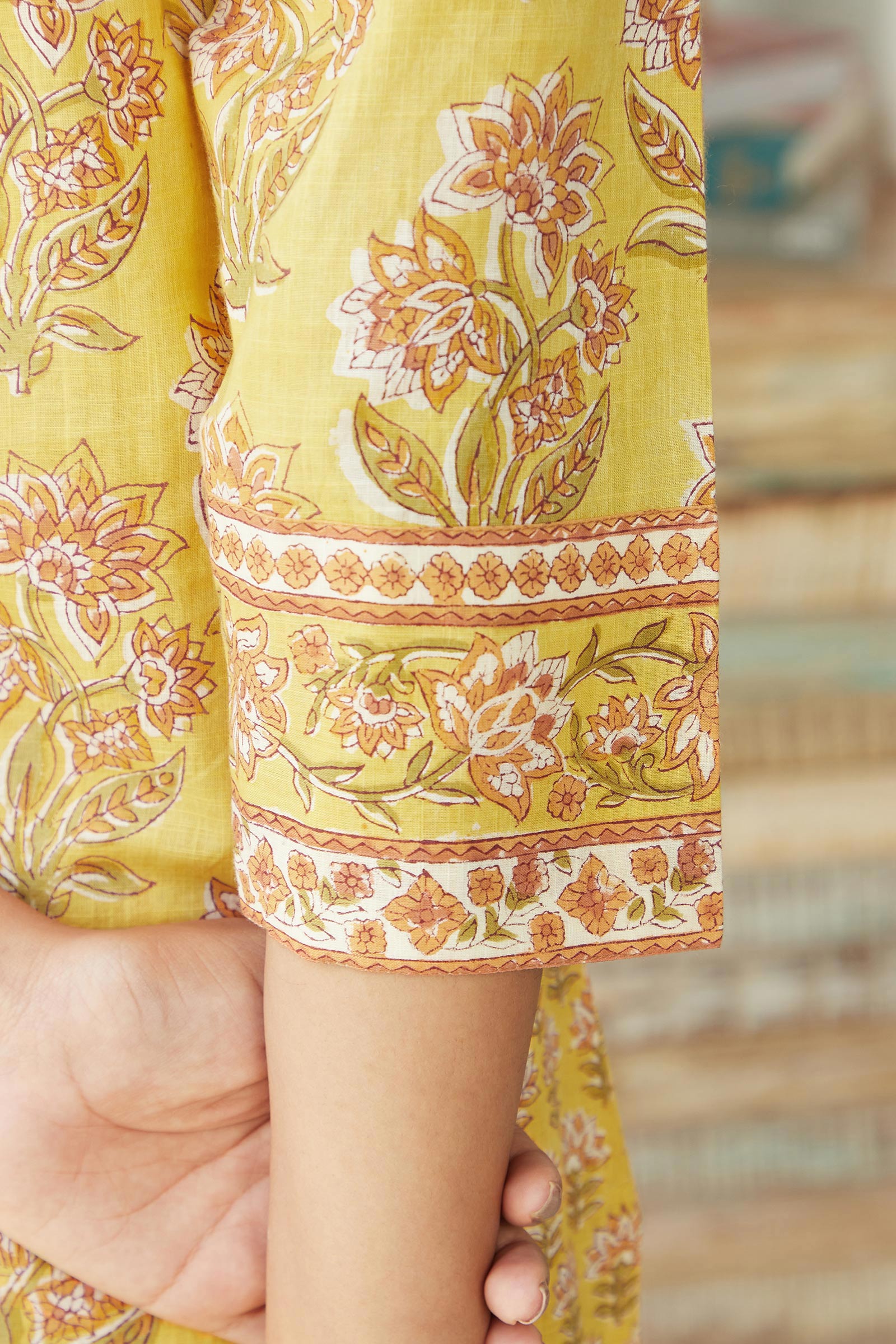 Our Gulshan Bagh Jiya Sanganeri Kurta showcases the charm of Spring-Summer. Adorned with a careful medley of hand block-printed floral motifs, this elegant piece exhibits a soothing colour palette. Handcrafted in soft Cotton Slub fabric, this Straight Kurta goes beautifully with the Gulshan Bagh Jiya Sanganeri Izhaar Pants.