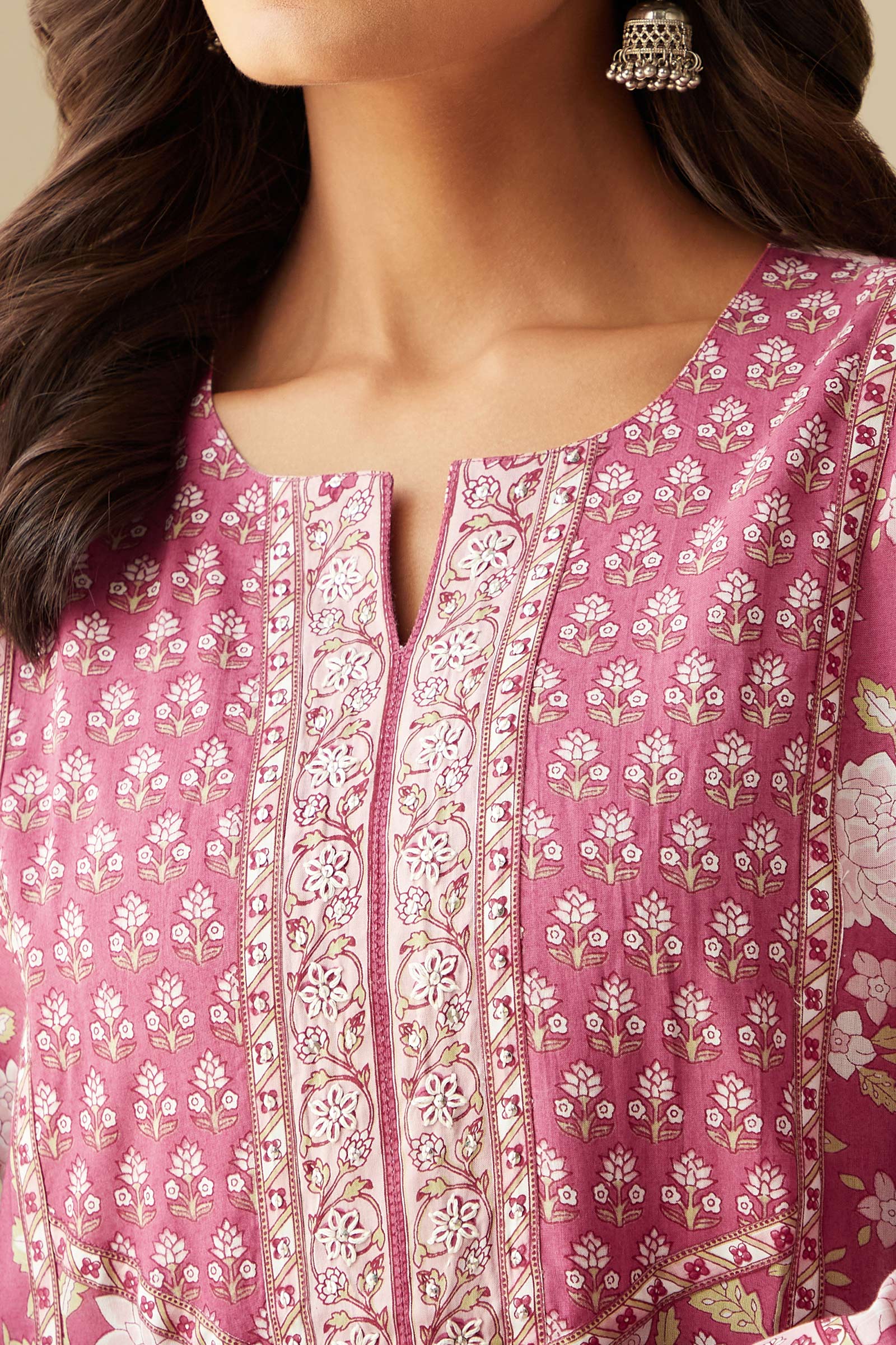 “Amaranthus” Embellish Floral Tassel Cotton Kurta
