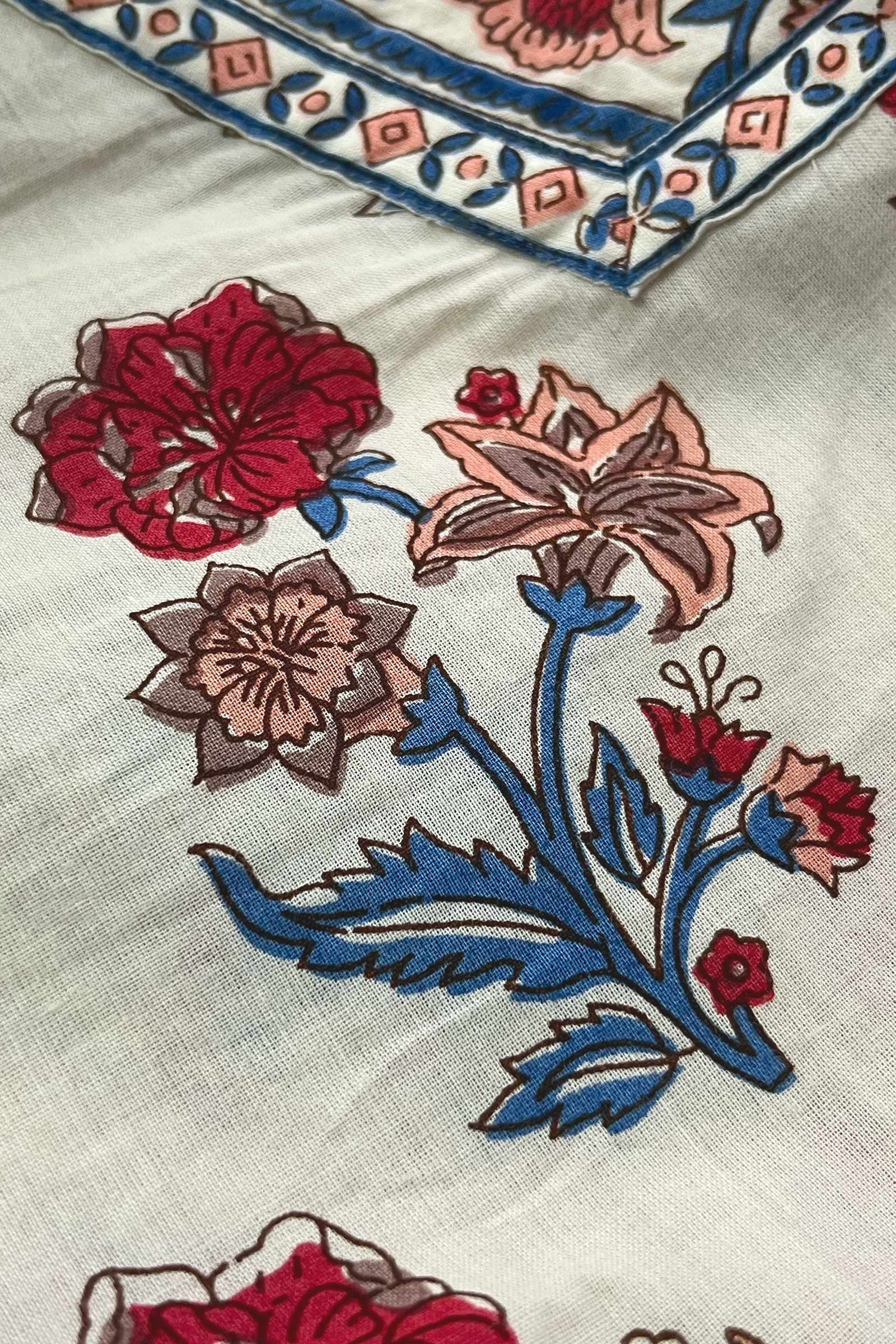 DISCLAIMER: Products printed with the craft involving Ajrak, Bagru, and Akola techniques may bleed during the first few washes or rub against the skin and other light-colored garments. These products may also react to sweat, potentially leading to discoloration over time. Additionally, all hand-printed items naturally tend to lose color with each wash, which is an inherent characteristic of these products. As our items undergo meticulous processes of hand block-printing, embroidery work, and stitching, variations are likely to occur, enhancing the uniqueness of each style. These inherent irregularities are characteristic of all handmade products, providing each piece with a distinct identity.