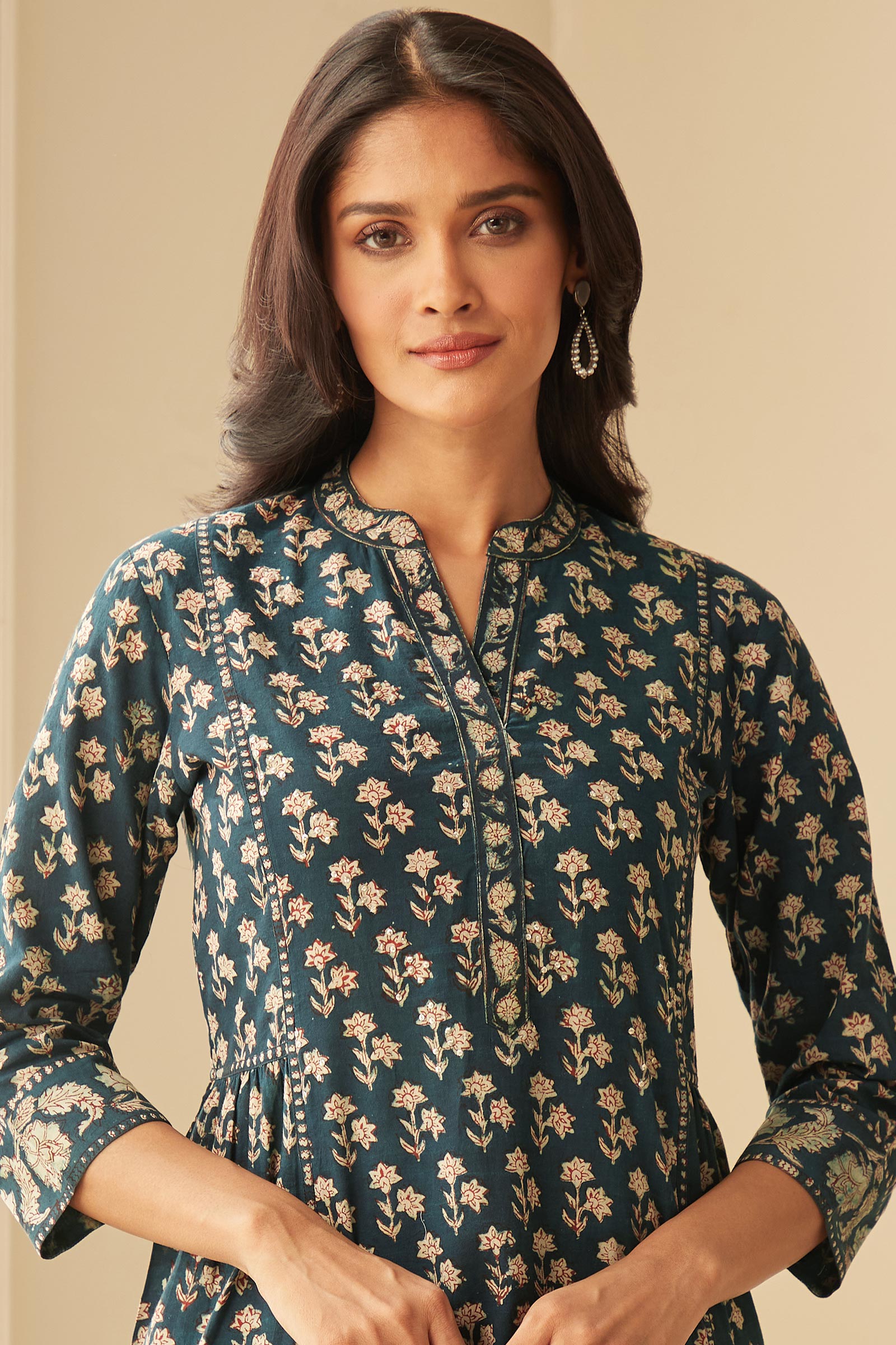 DISCLAIMER: Products printed with the craft involving Ajrak, Bagru, and Akola techniques may bleed during the first few washes or rub against the skin and other light-colored garments. These products may also react to sweat, potentially leading to discoloration over time. Additionally, all hand-printed items naturally tend to lose color with each wash, which is an inherent characteristic of these products. As our items undergo meticulous processes of hand block-printing, embroidery work, and stitching, variations are likely to occur, enhancing the uniqueness of each style. These inherent irregularities are characteristic of all handmade products, providing each piece with a distinct identity.