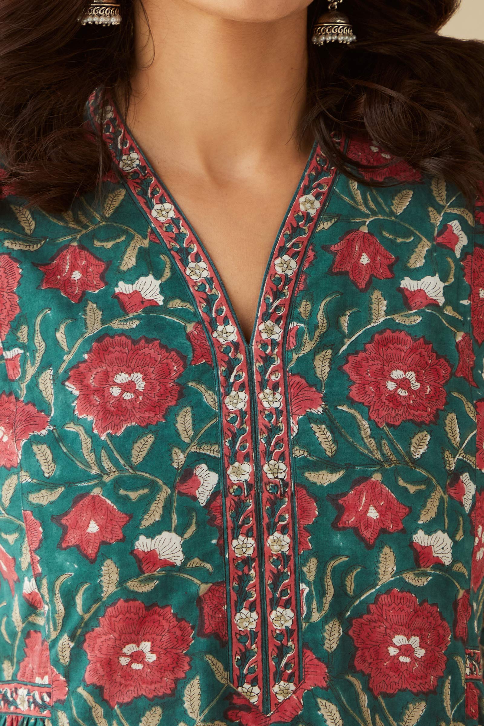 DISCLAIMER: Products printed with the craft involving Ajrak, Bagru, and Akola techniques may bleed during the first few washes or rub against the skin and other light-colored garments. These products may also react to sweat, potentially leading to discoloration over time. Additionally, all hand-printed items naturally tend to lose color with each wash, which is an inherent characteristic of these products. As our items undergo meticulous processes of hand block-printing, embroidery work, and stitching, variations are likely to occur, enhancing the uniqueness of each style. These inherent irregularities are characteristic of all handmade products, providing each piece with a distinct identity.