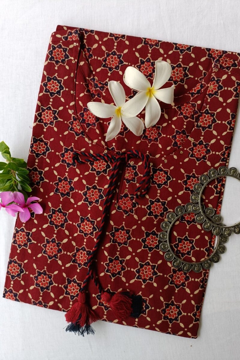 “Kaya” Maroon ajrakh hand block printed cotton Kurta