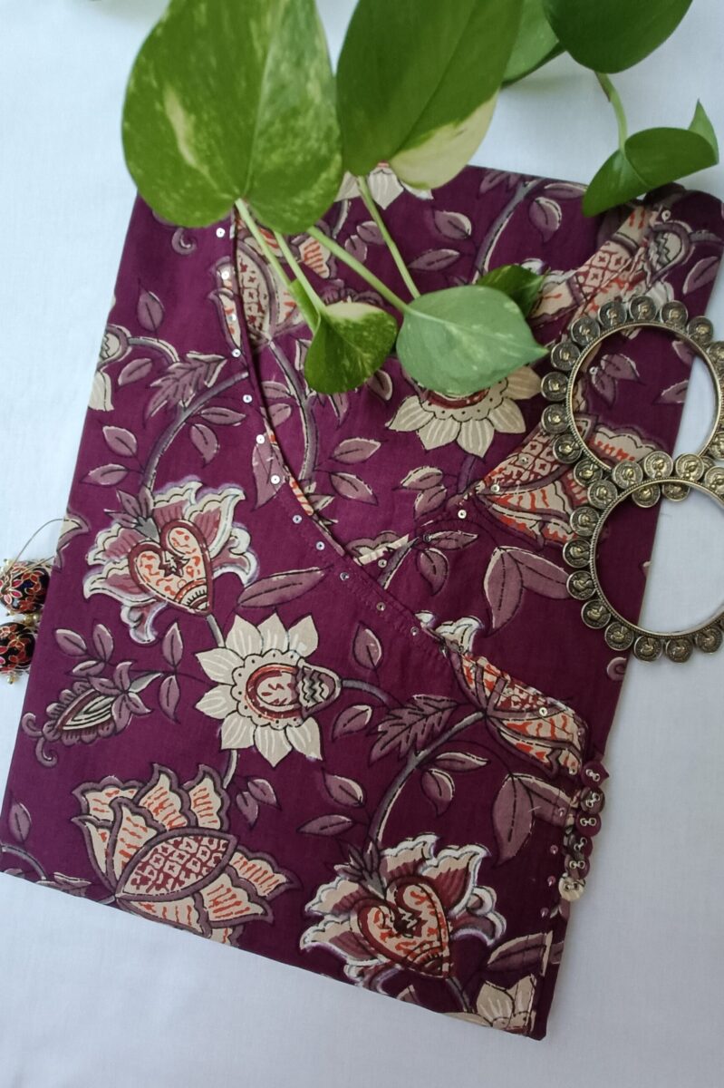 ₹199.00 – ₹699.00Price range: ₹199.00 through ₹699.00“Haseen” Purple Angrakha Cotton Kurta