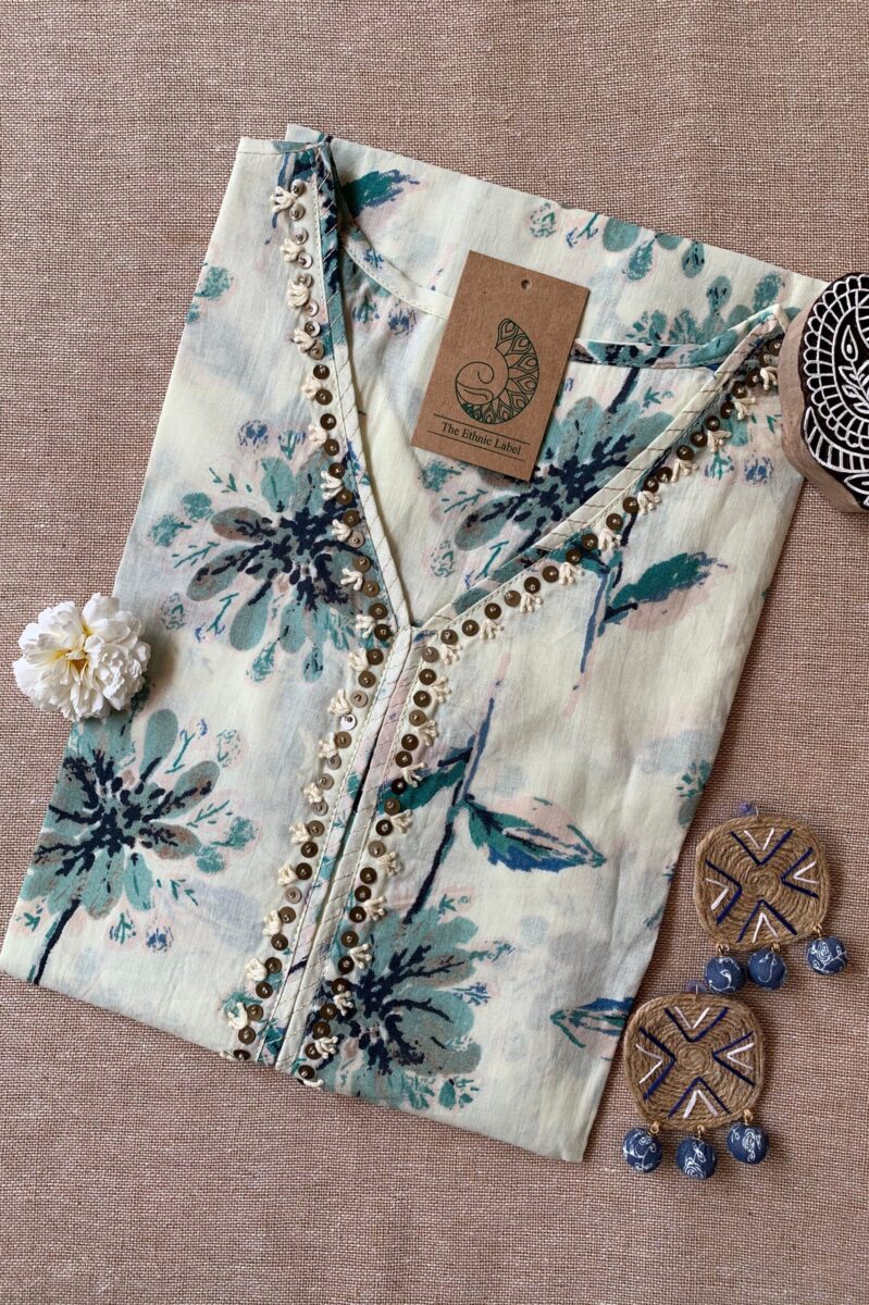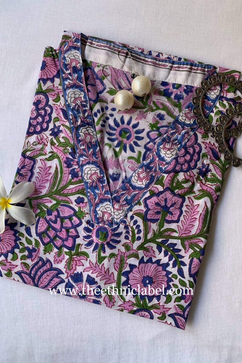 “Kiran” Hand Block Printed Laced Cotton kurta