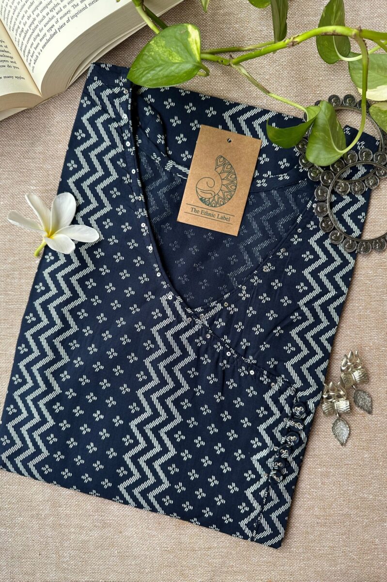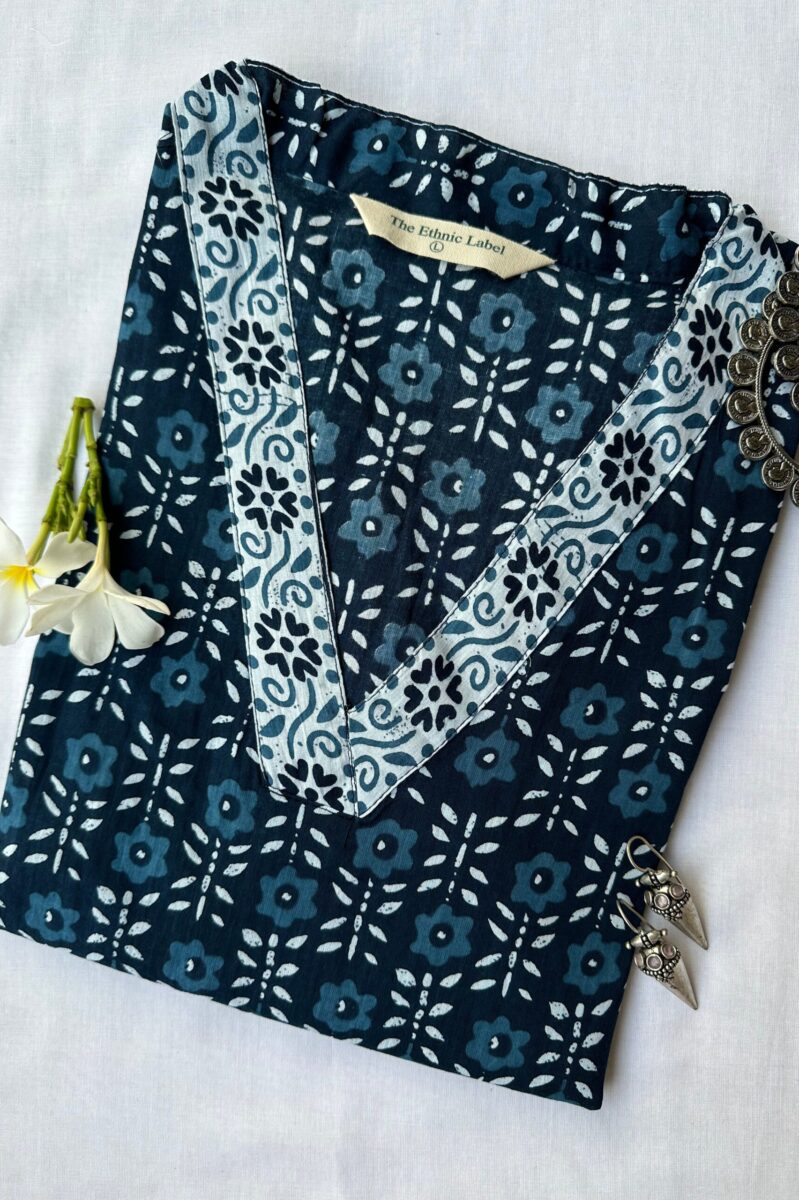 “Maahi” Indigo Hand Block Printed cotton kurta