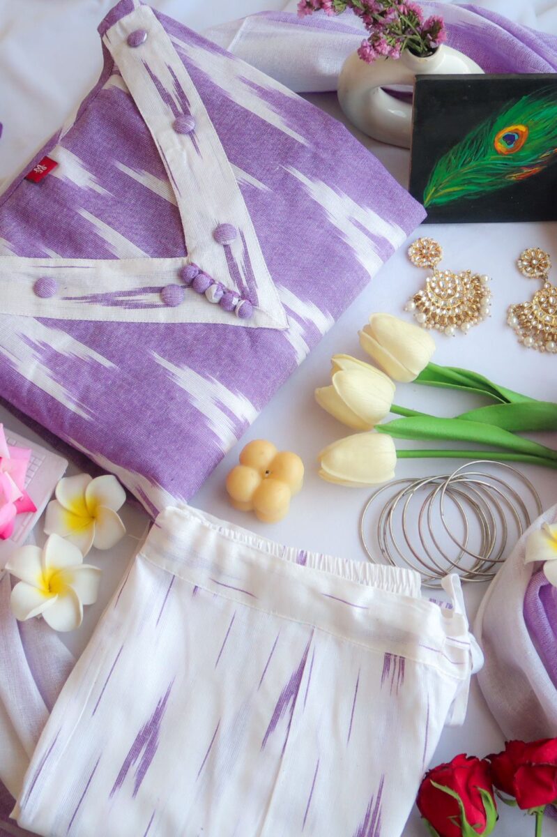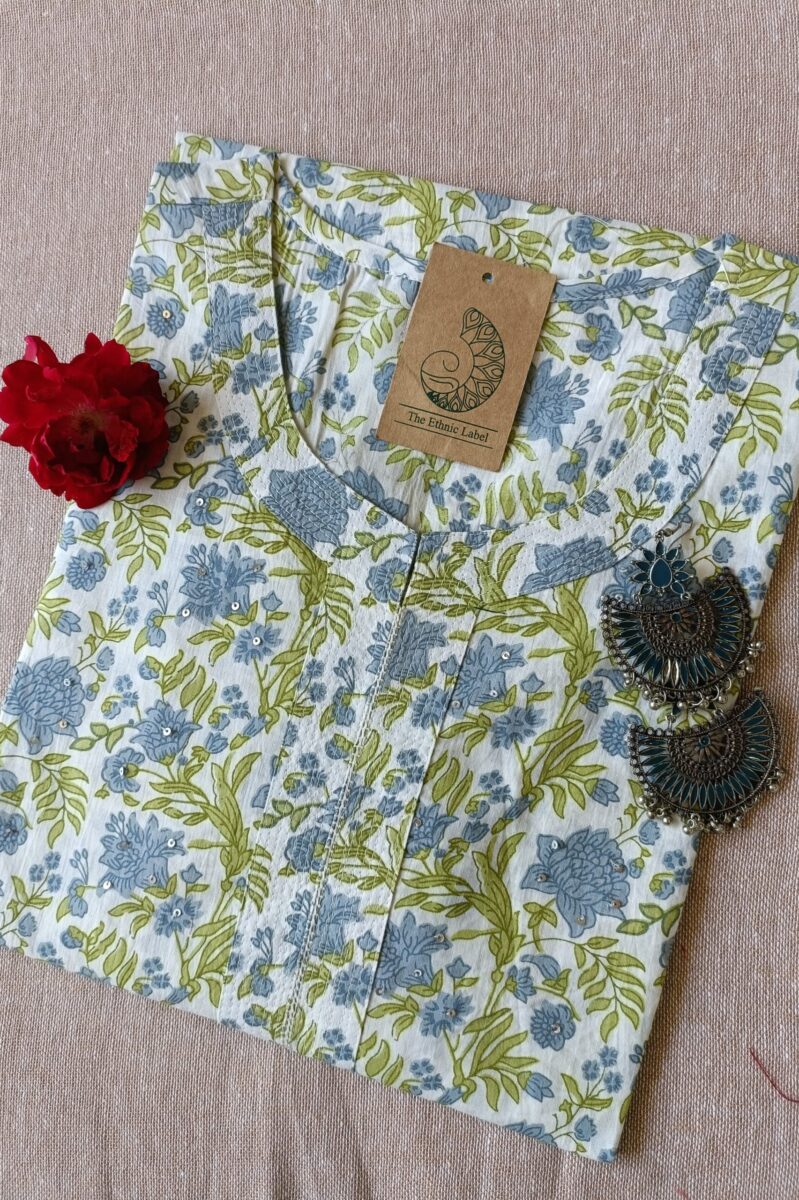 White Lilac Sanganer Cotton Kurta – XXL