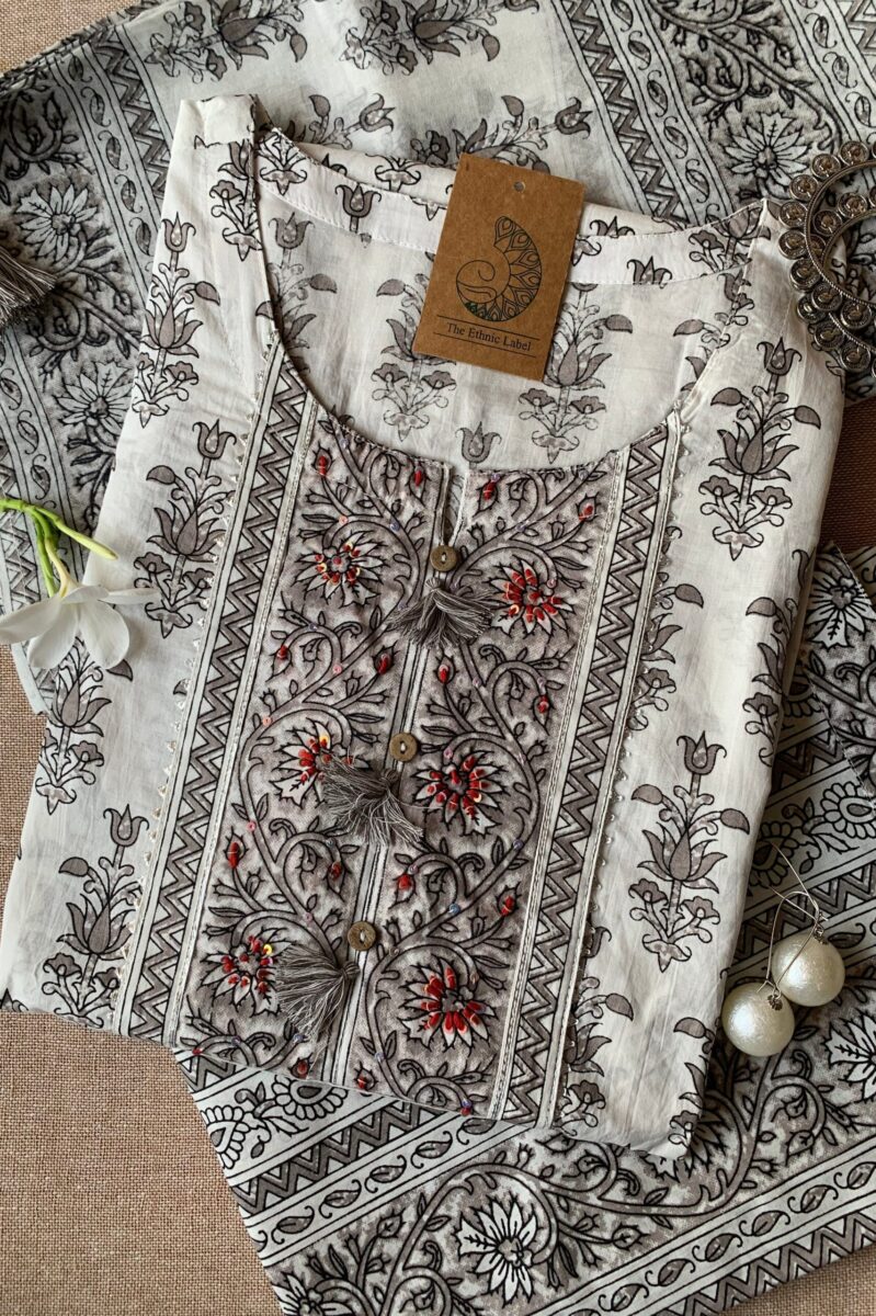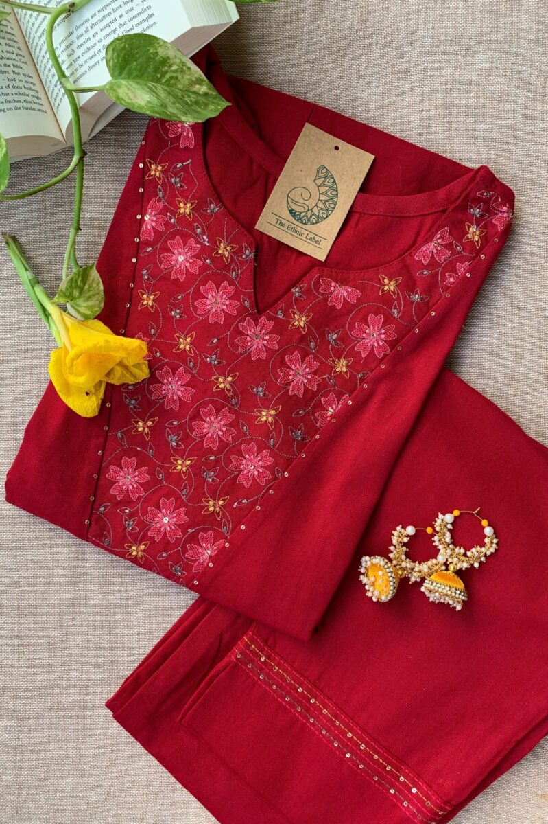 “Mahua” Hand Embroidered Cotton Kurta Set(2pc)