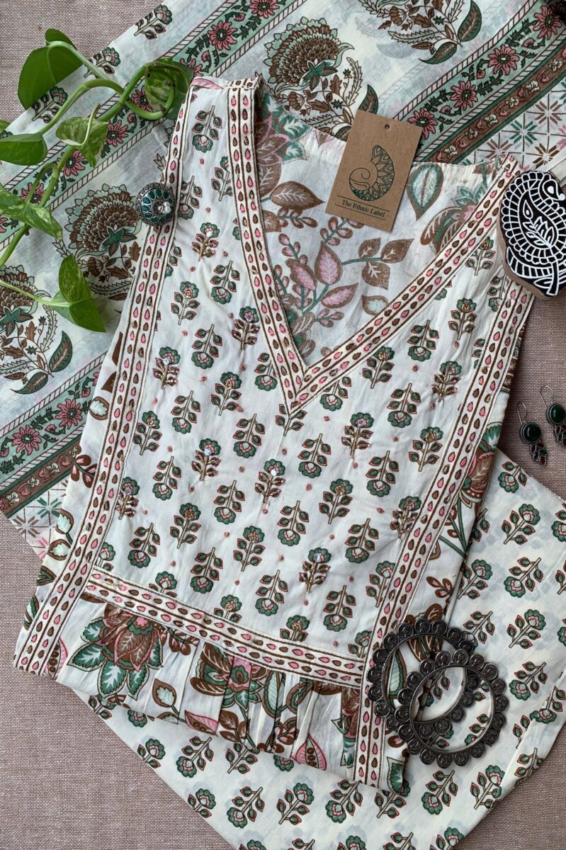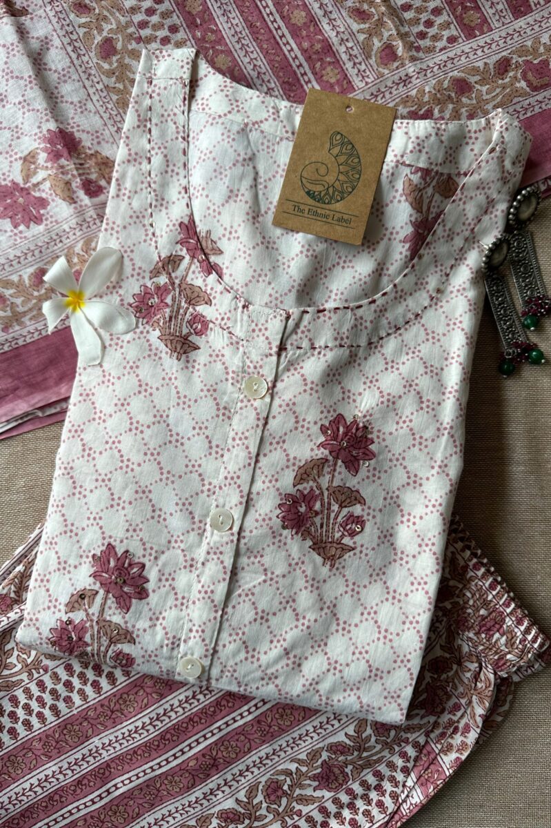 “Malini” Hand Block Printed Cotton Kurta Set(3pc)