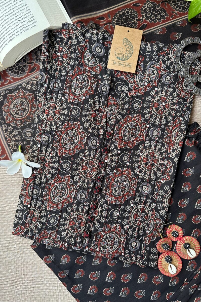 “Noora” Black Ajrakh hand block printed suit set(3 pc)