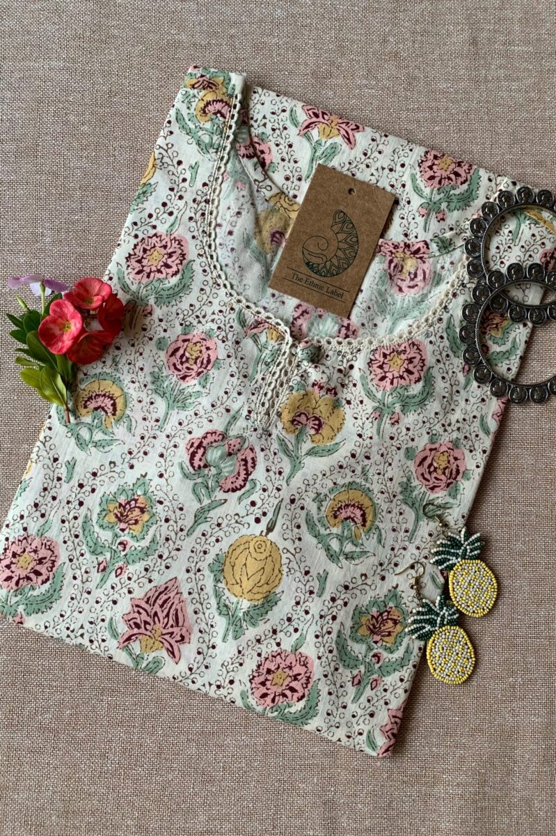 “Navya” Sanganeri hand block printed cotton Kurta