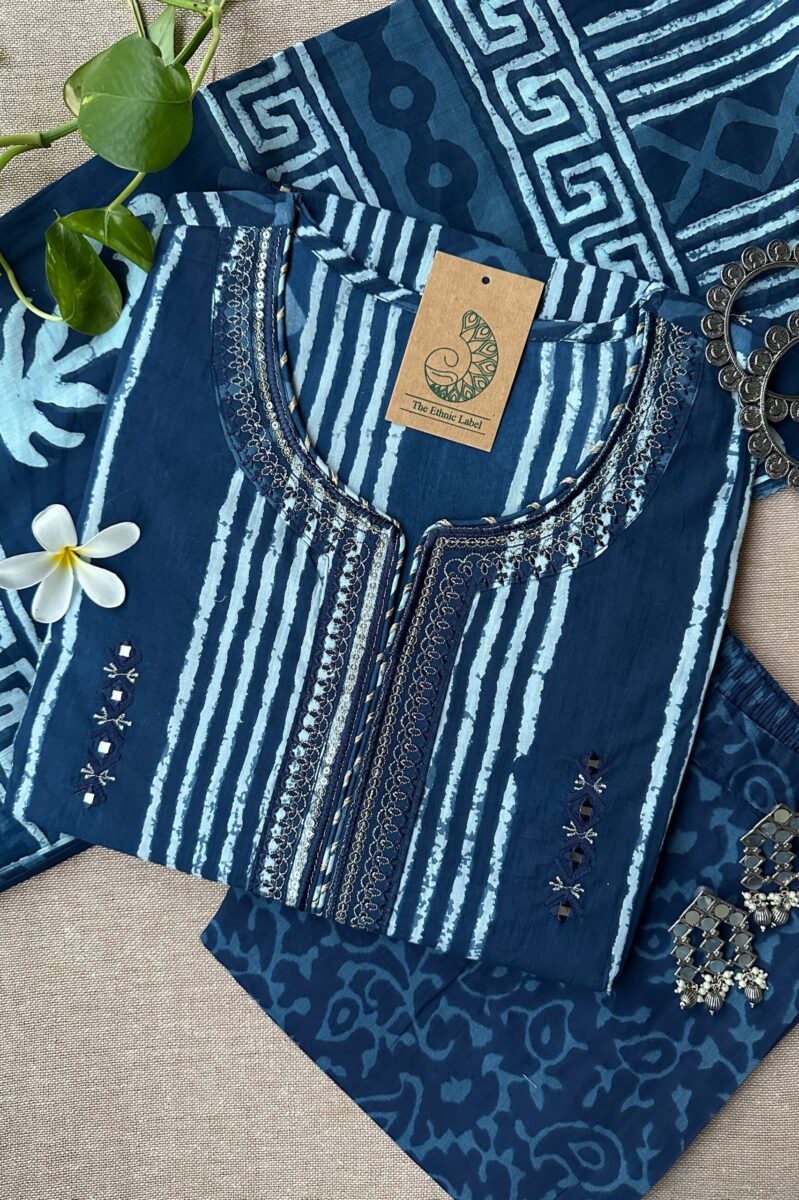 “Nazar” Indigo Hand Embroidered Kurta Set with dupatta(3pc)