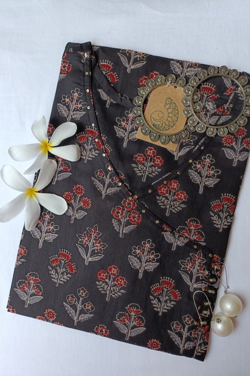 “Sameera” Black hand block printed cotton Kurta-S