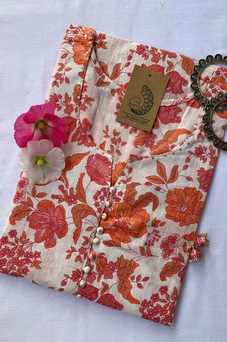 “Paradise” White Orange Cotton Kurta