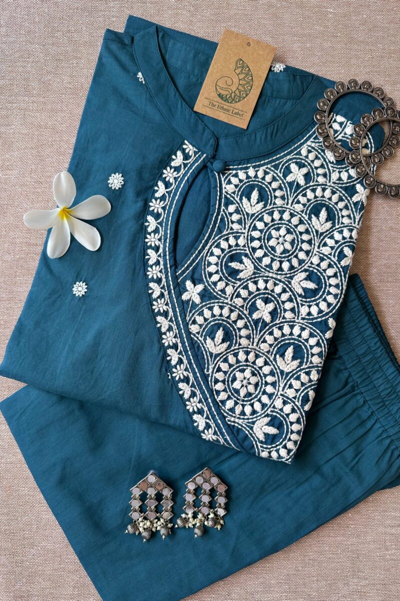 “Roohani” Teal Blue Chikankari Kurta Set(2pc)