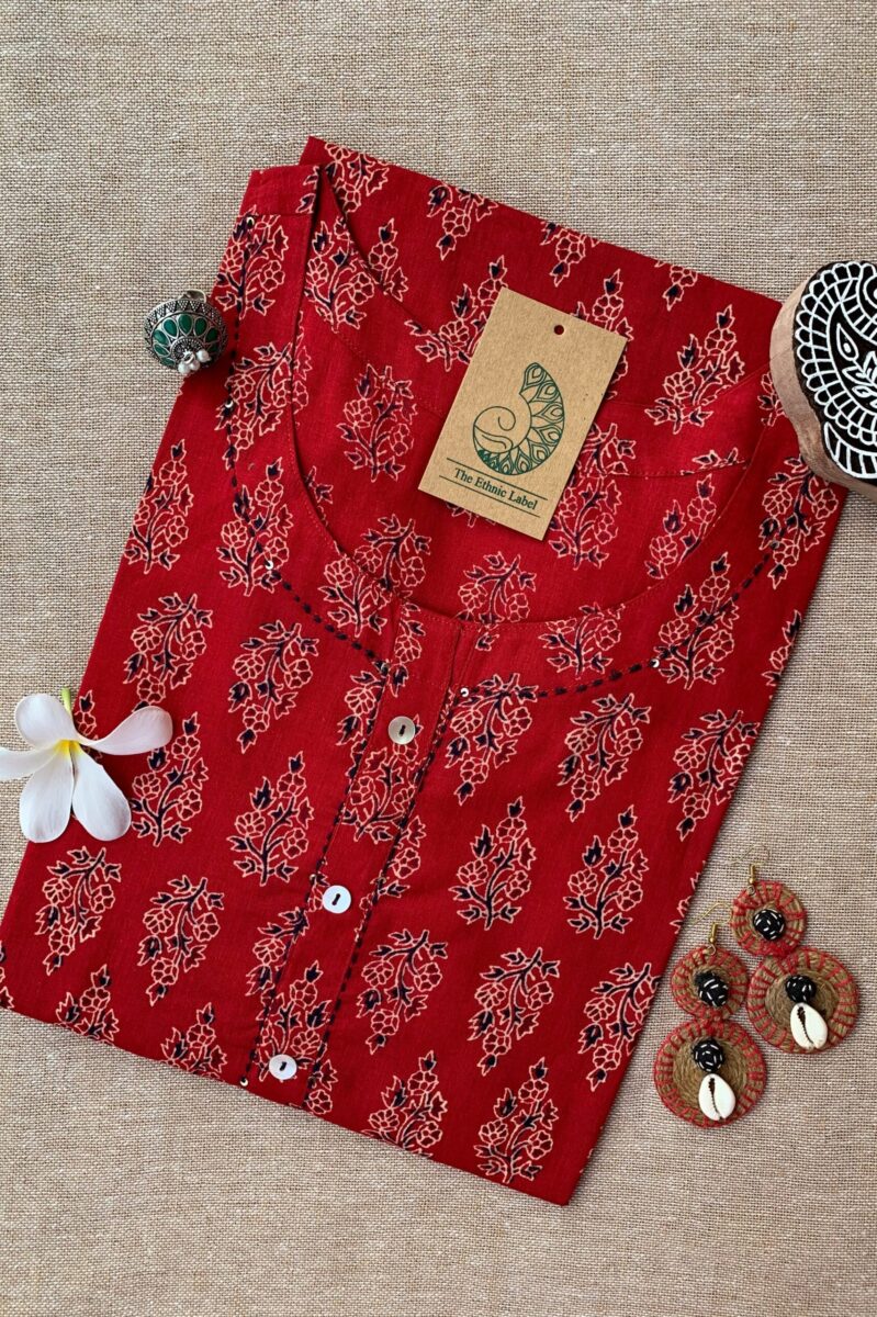 “Paakhi” Deep Red Paisley Hand Block Printed Cotton kurta