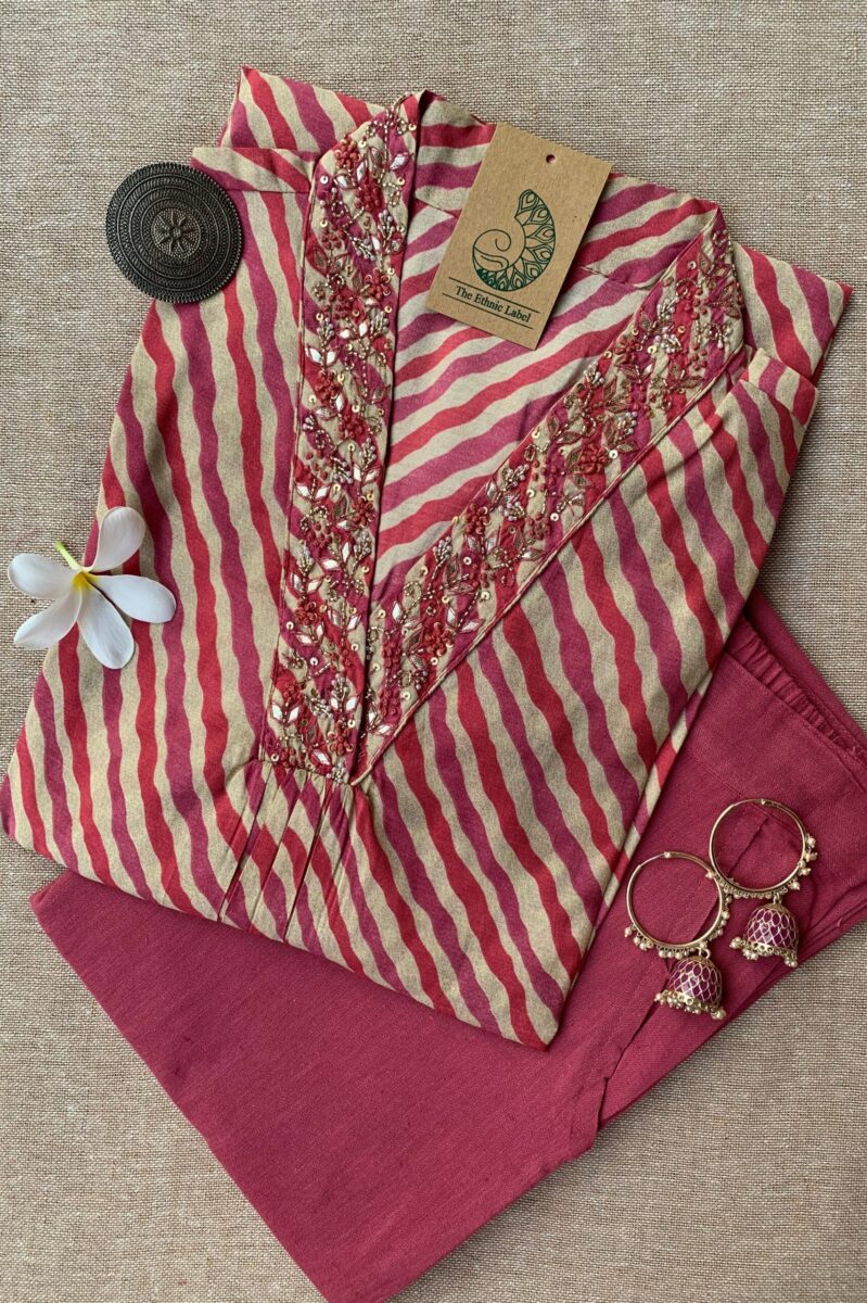 “Nupur” Cotton Kurta Set with Pants and Dupatta- 3pc