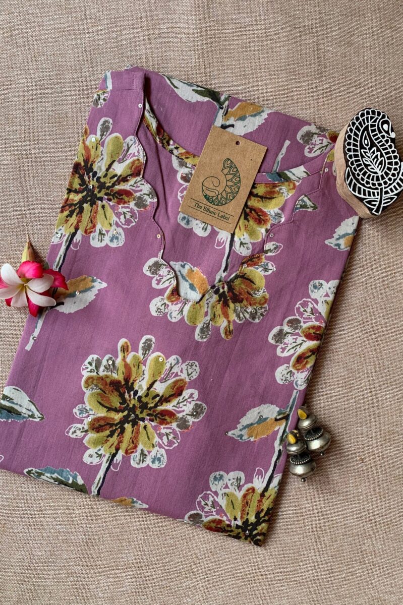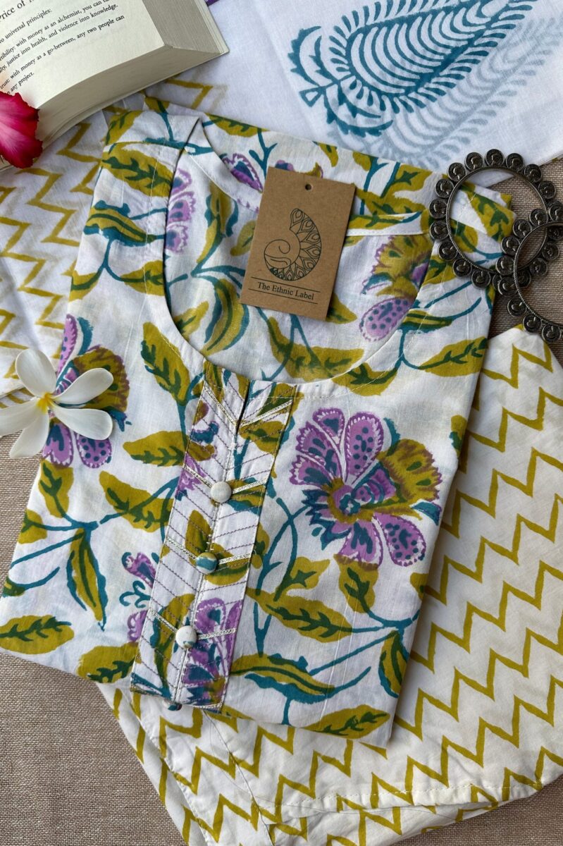 “Shifa” Hand Block Printed Scalloped Cotton kurta