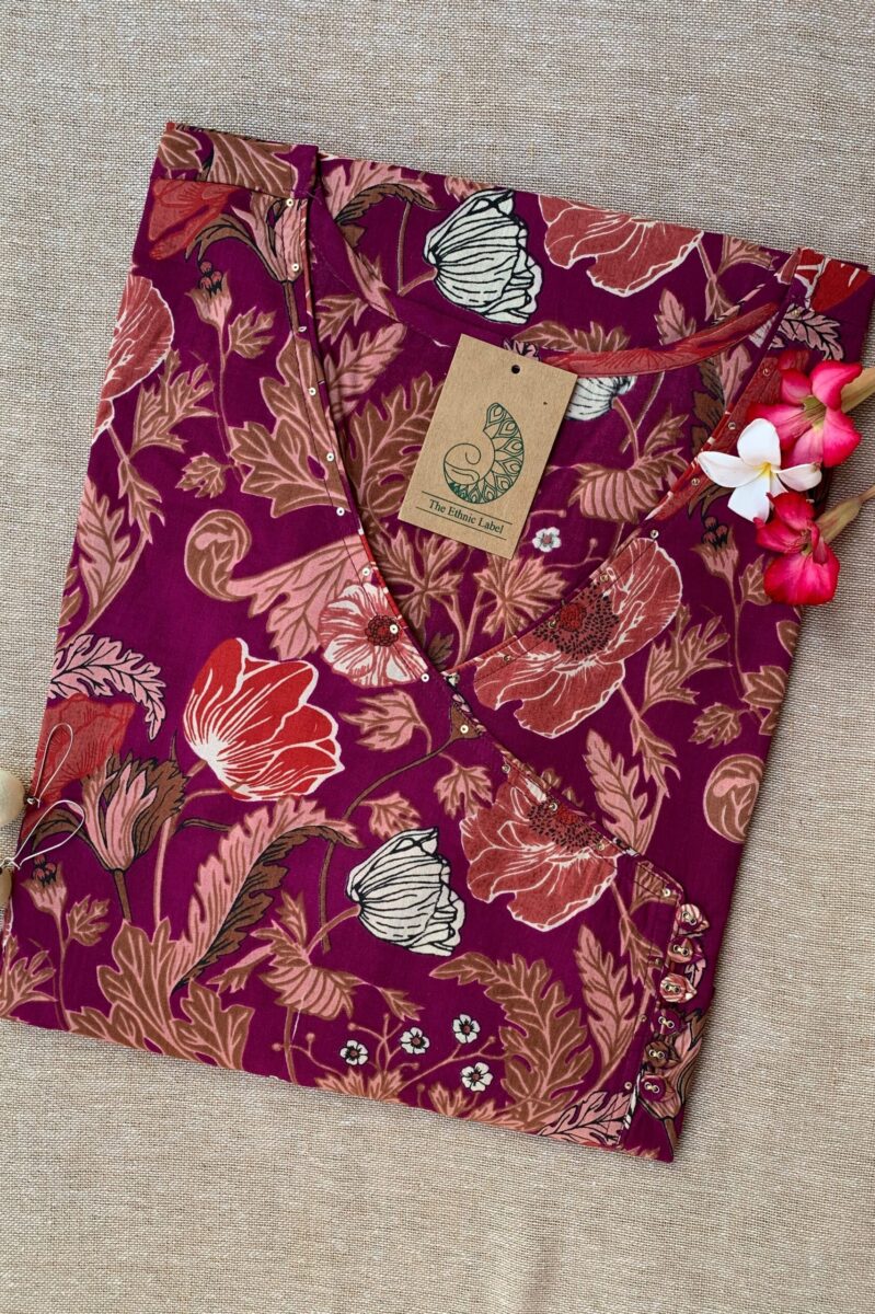 “Suman” Hand Block Printed Angrakha Cotton kurta – Big Size